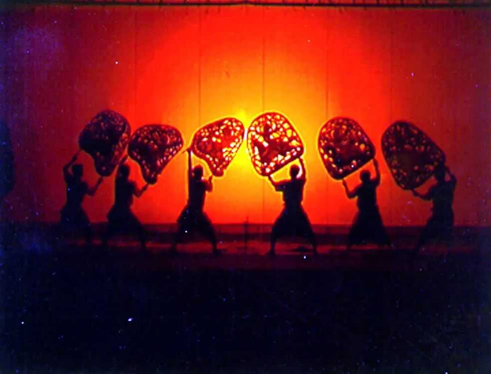 Sbek Thom is a form of Khmer shadow theatre. The shadow puppets, which are up to two meters tall, are non-articulated singing and dancing puppets made from cut-out leather. Even before the Angkor period, Sbek Thom was considered sacred, alongside the Royal Ballet and mask theatre. To pay homage to the gods, performances could only be held three to four times a year on specific occasions, such as the Khmer New Year, the king's birthday, or memorial ceremonies for notable figures.