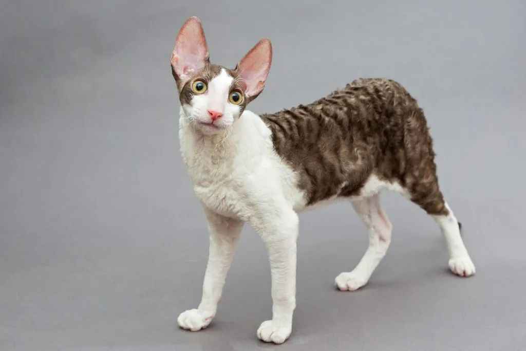 The Cornish Rex is renowned for its extreme elegance. Its slender, muscular body sits atop long, agile legs, while the egg-shaped head features disproportionately large ears and almond-shaped eyes. The coat, composed entirely of soft downy hair, clings tightly to the body in uniform waves, including curly whiskers35. This hair structure minimizes shedding but lacks protective guard hairs, necessitating warmth and sun protection68.
